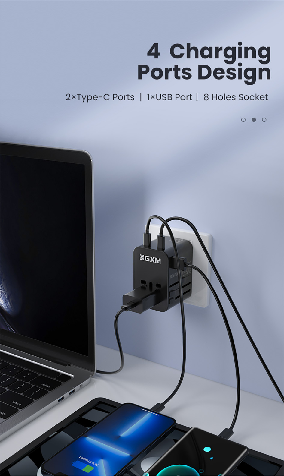 - 2x Type-C , 1x USB & 8 Holes Socket
