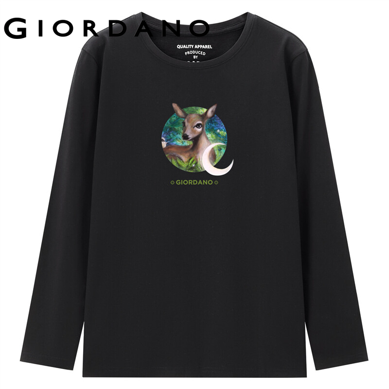 GIORDANO Women ARTAND Series T-Shirts Quality Print 100% Cotton Tee Spring Fall Long Sleeve Simple Casual T-Shirts 99392101