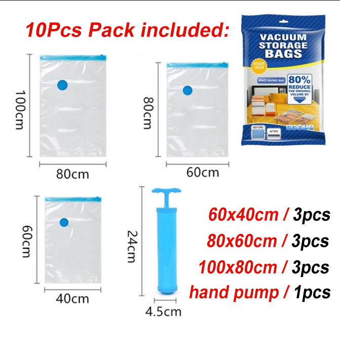 ● Double-zip seal, with plastic valve compatible with a hand vacuum pump or vacuum cleaner to make them air-tight.
