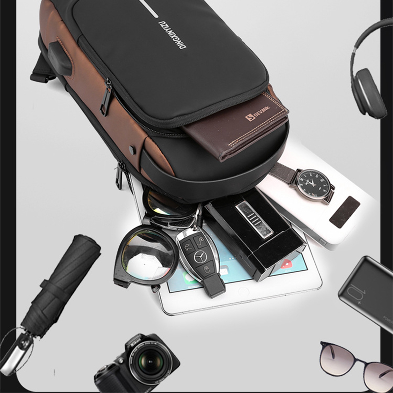 2022 New Leather Men's Chest Bag Crossbody Bag Shoulder Bag with USB Charging Port Large Capacity Multifunctional Anti-theft Password Bag For Sports Car Cool Crossbody Bag