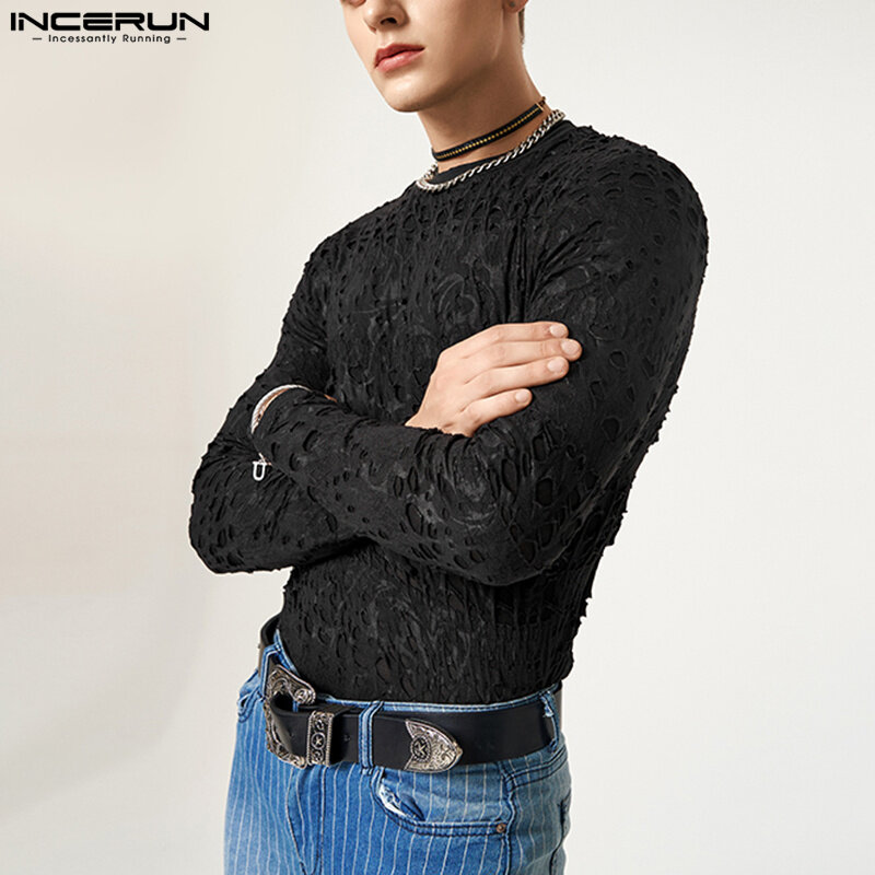 Product Description:Men's Transparent long sleeve tops.