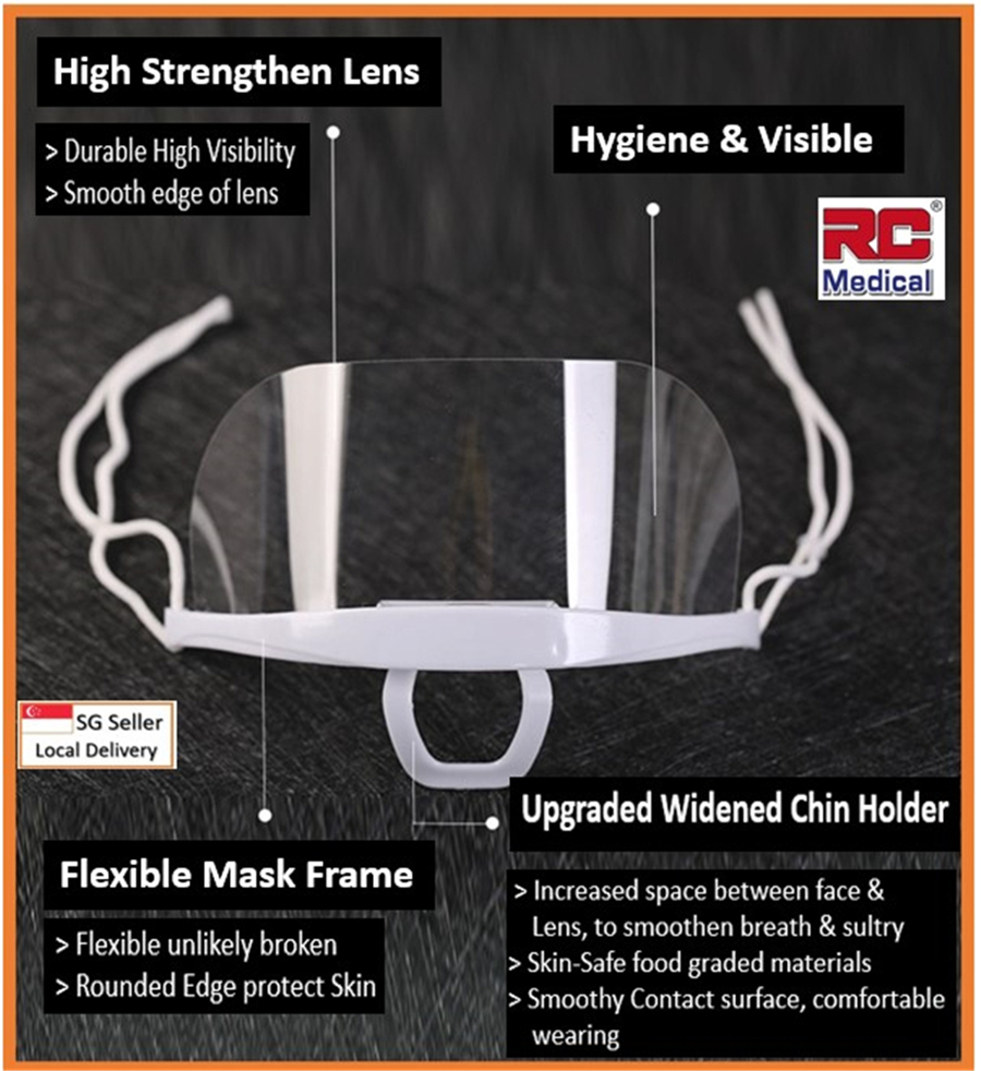 * SG seller with huge stocks * Ready-To-Ship: 24 hours (Mon.-Fri.) except Weekend & P.H. * * High quality reusable Transparent Mouth Shield *