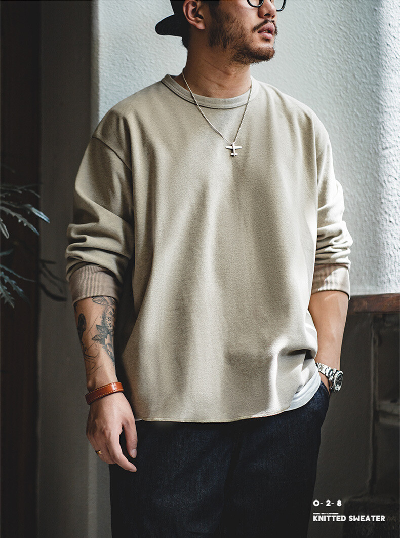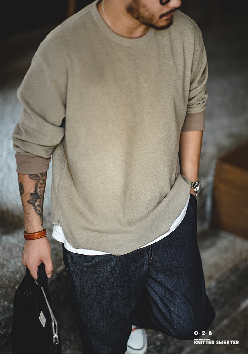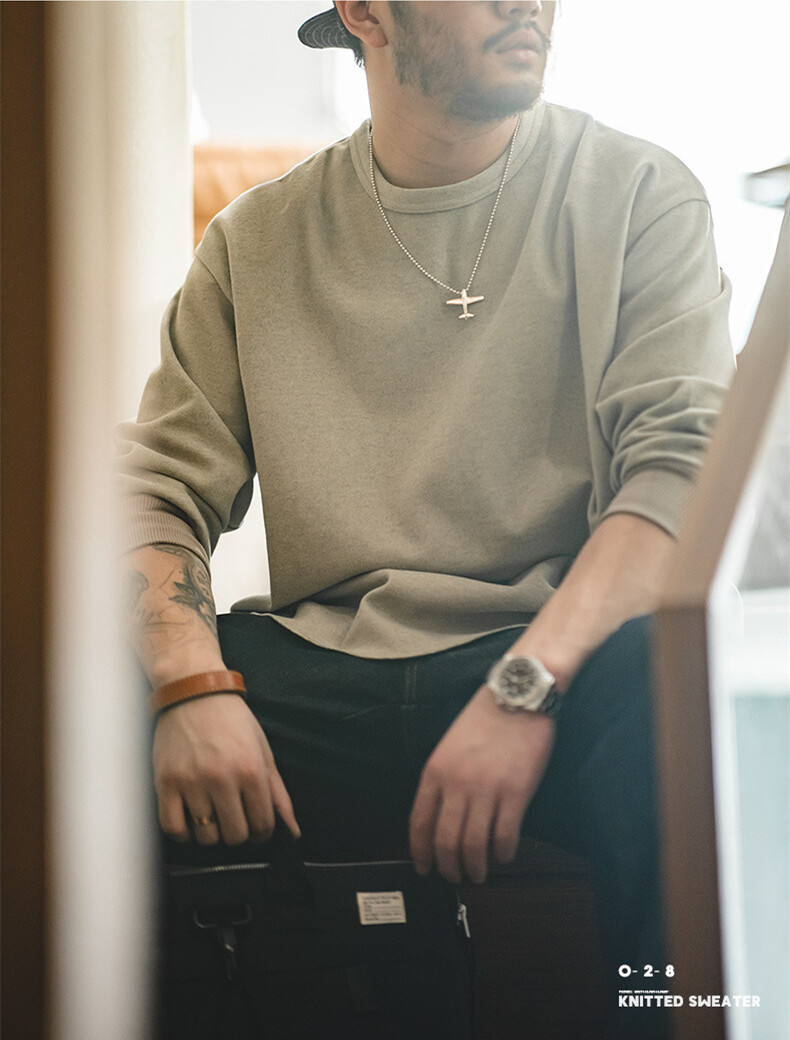 MADEN brand tooling style 2022 autumn new men youth college American leisure starry sky worsted round neck sweater hem split men's loose long sleeves