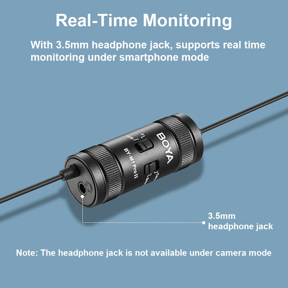 BOYA BY-M1 Pro II Universal Clip-on Microphone Omni-directional Condenser Lapel Mic 3.5mm TRRS Plug 6M Long Cable Plug-and-Play for Smartphone Camera Camcorder Audio Recorder Computer