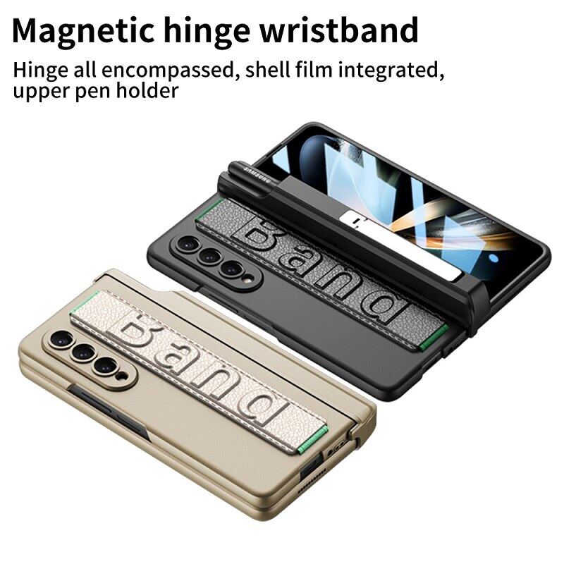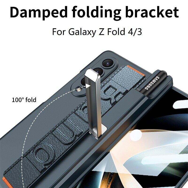 HOCE Luxury Full Protect Phone Cases For Samsung Galaxy Z Fold 3 Fold 4 With Wrist Strap Pen Slot Case For Z Fold4 Fold3 Holder Stand Hinge Protect Cover