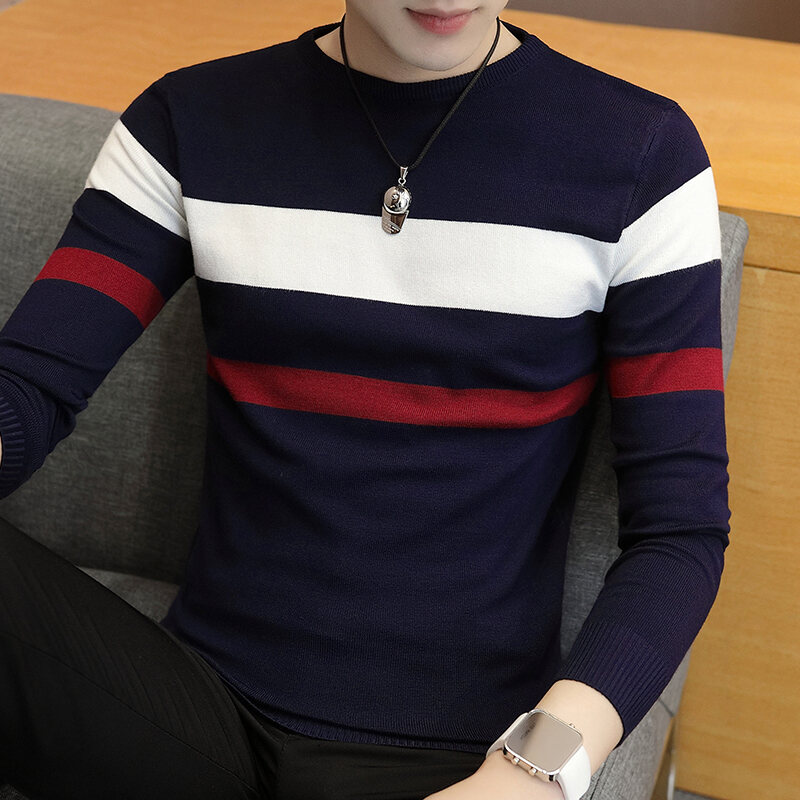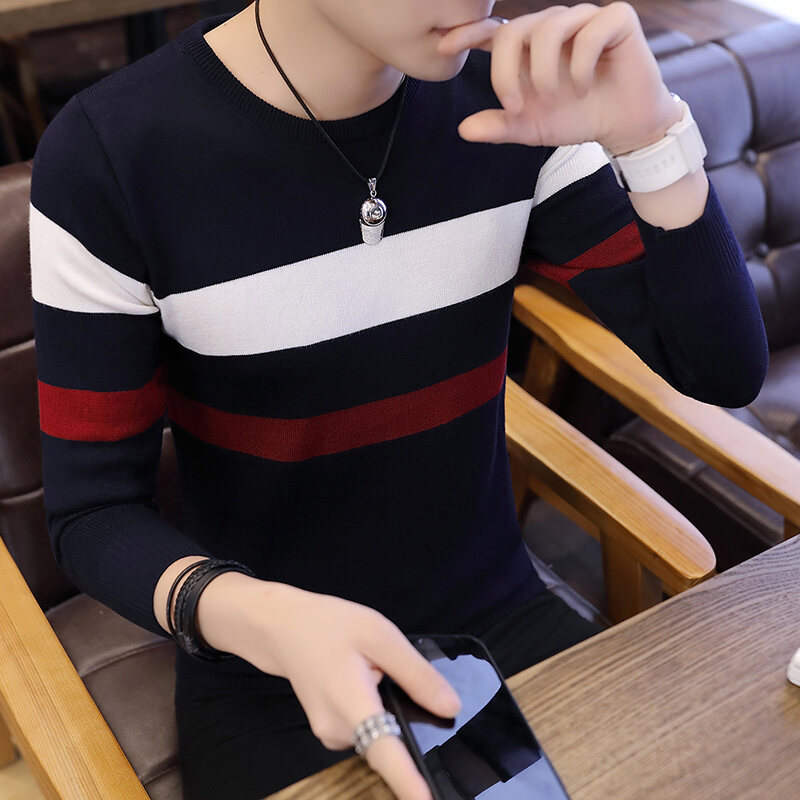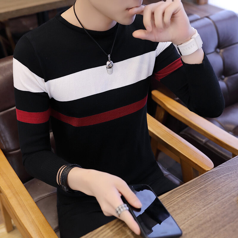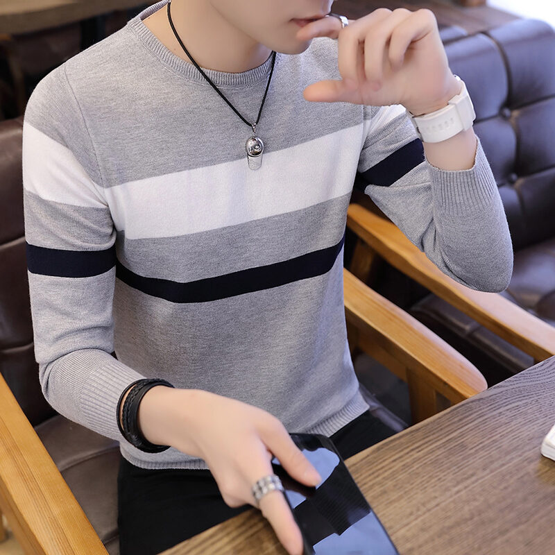 Sweater Men's 2018 Autumn New Style Men's Sweater Unique Plaid Round Neck Autumn Korean-style Fashionable Handsome Sweater