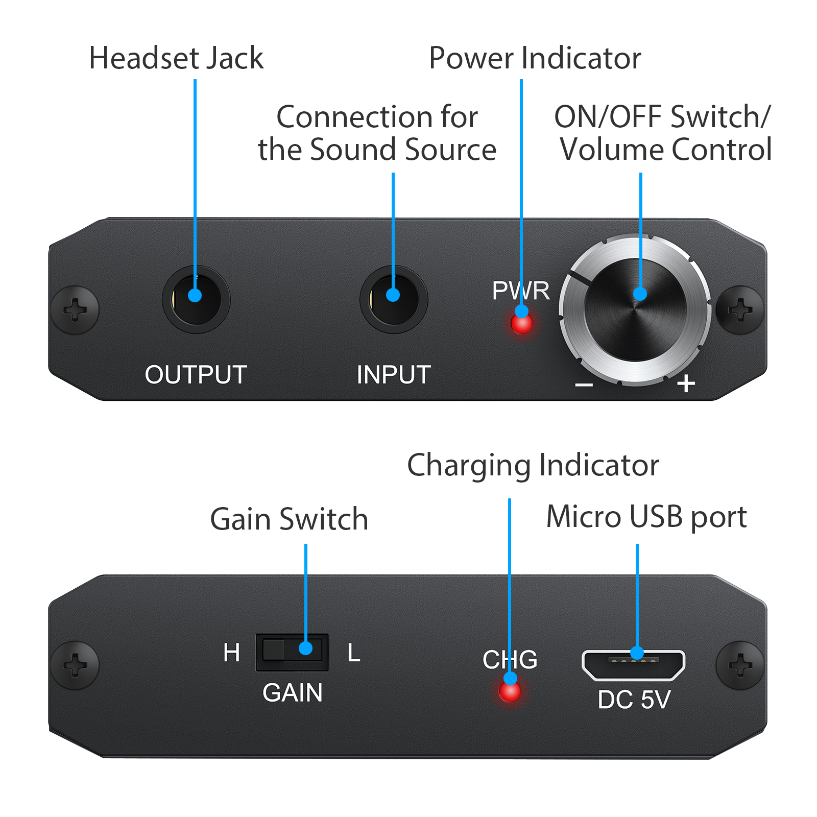 • 3.Two-stage gain switch enhances the signal input into the amp circuit for optimal performance of the headphones
