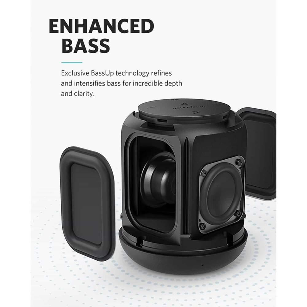Anker SoundCore Motion Q 360° Bluetooth Speaker Waterproof 10-Hour Playtime, all-around sound paired with impenetrable waterproof protection and a wrist strap for a truly on-the-go experience.
