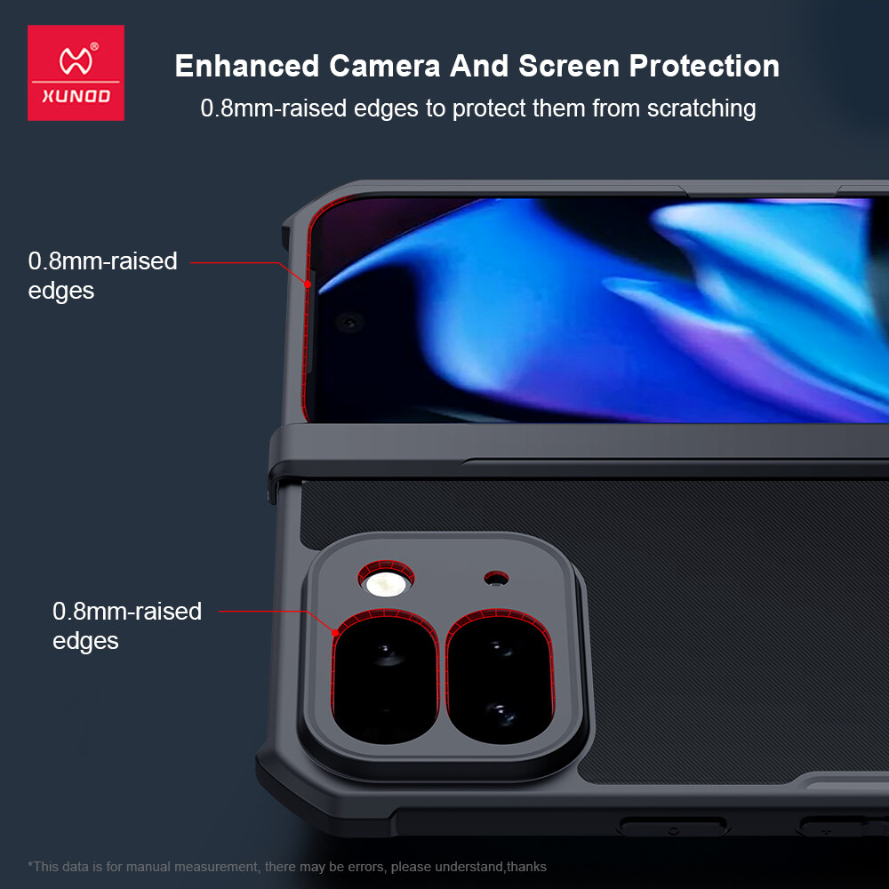 0.8mm raised edge to avoid the precious camera lens of the mobile phone, and the screen, so as not to be easily scratched, upgrade the whole lens package, design of the buffer suspension between the lens and the whole package, anti-drop laboratory feedback more secure, and lens gap structure around the whole package optimized