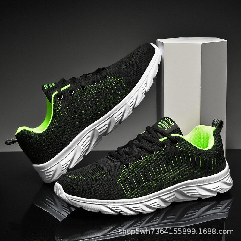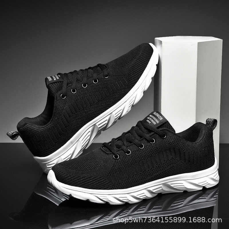 Mesh Surface Shoes Men's Summer Breathable Thin Mesh Surface Hollowed Large Mesh Men's Shoes Casual Running Black Flyknit Sneaker