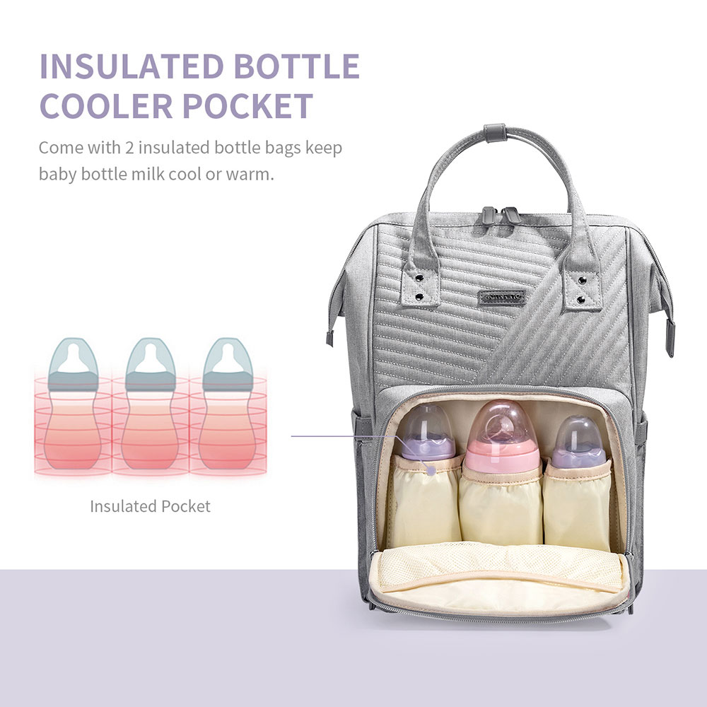 Sunveno Multifunction Diaper Bag Large Capacity Mommy Backpack, Waterproof Travel Nappy Bag, Quilted Fashion Maternity Bag with Front insulated Bottle Pockets