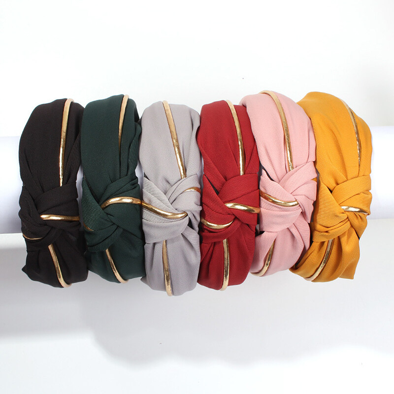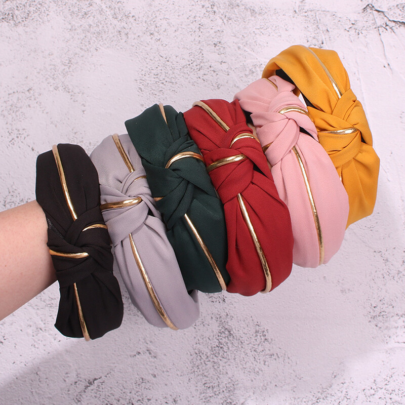 New Arrival Women's Korean High-grade Striped Headband Simple Solid Color Gold Side Female Hairband Headwear Accessories