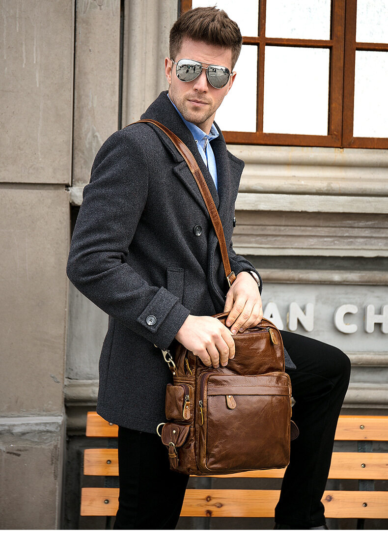 Royal Bagger Genuine Cow Leather Waterproof High Capacity Travel Computer Backpack For Boys Men Outdoor Work Handbag Simple Men's Student Backpacks Hot Sale School Shoulder Bags