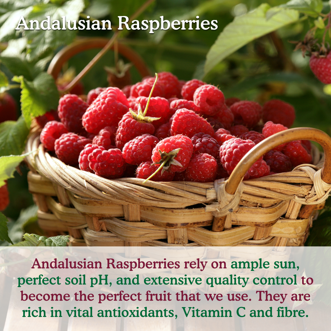 Juicy Italian peaches are balanced with plump Andalusian raspberries, bringing a pleasant sweet-sour flavour to the mix.