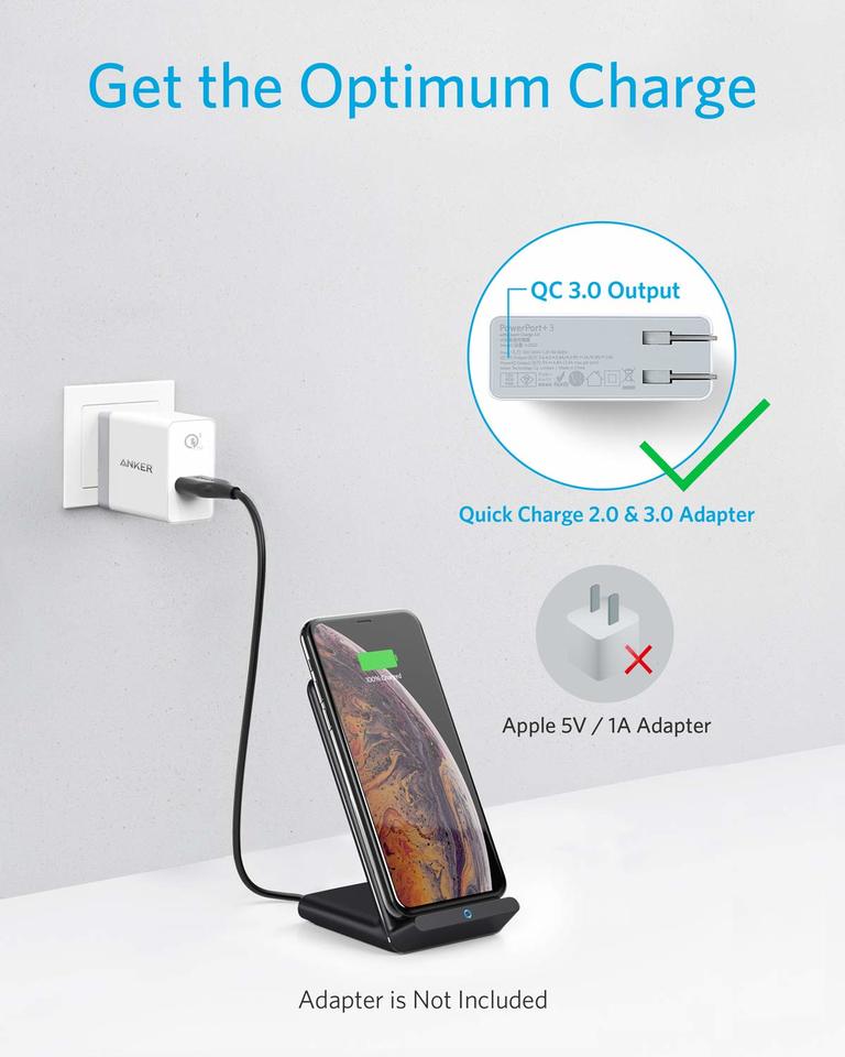 Anker PowerWave Stand Upgraded, Qi-Certified, 7.5W for iPhone 13/12/11/X, 8, 8 Plus, 10W for Galaxy S20 Series S10, Note 10 Note 9 (No AC Adapter)