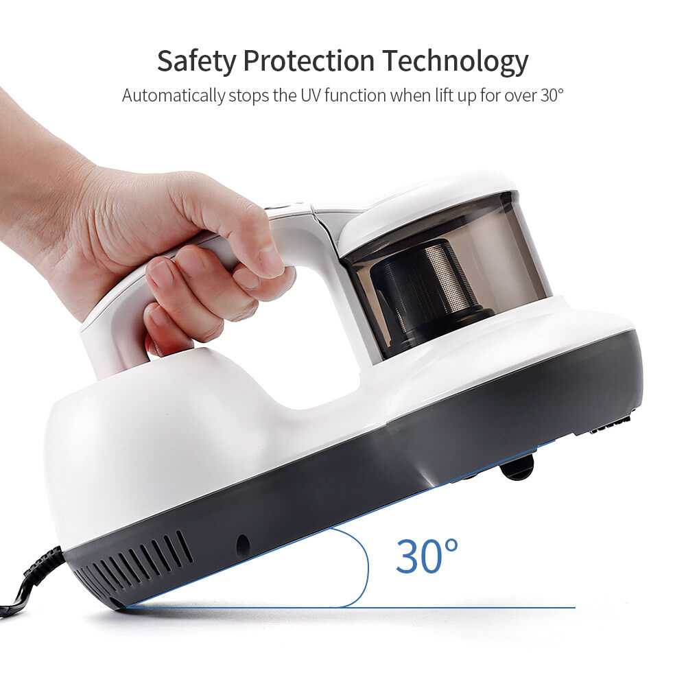 - The UV light automatically stops working when lift up over 30 degree or away from the cleaning surface, avoid direct exposure and damage to human skin