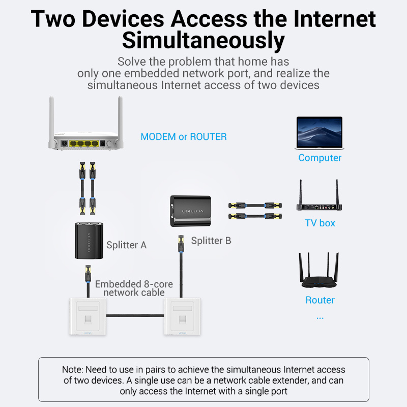 Solve the problem that home has only one embedded network port,and realize the simultaneous Internet access of two devices