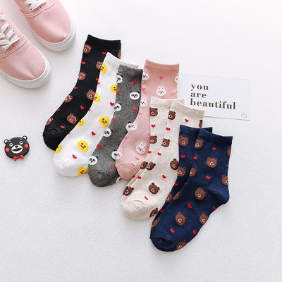 (10 pairs, 10 colors) Brown bear socks For Women Men Kids Children Cute Cartoon Short Socks