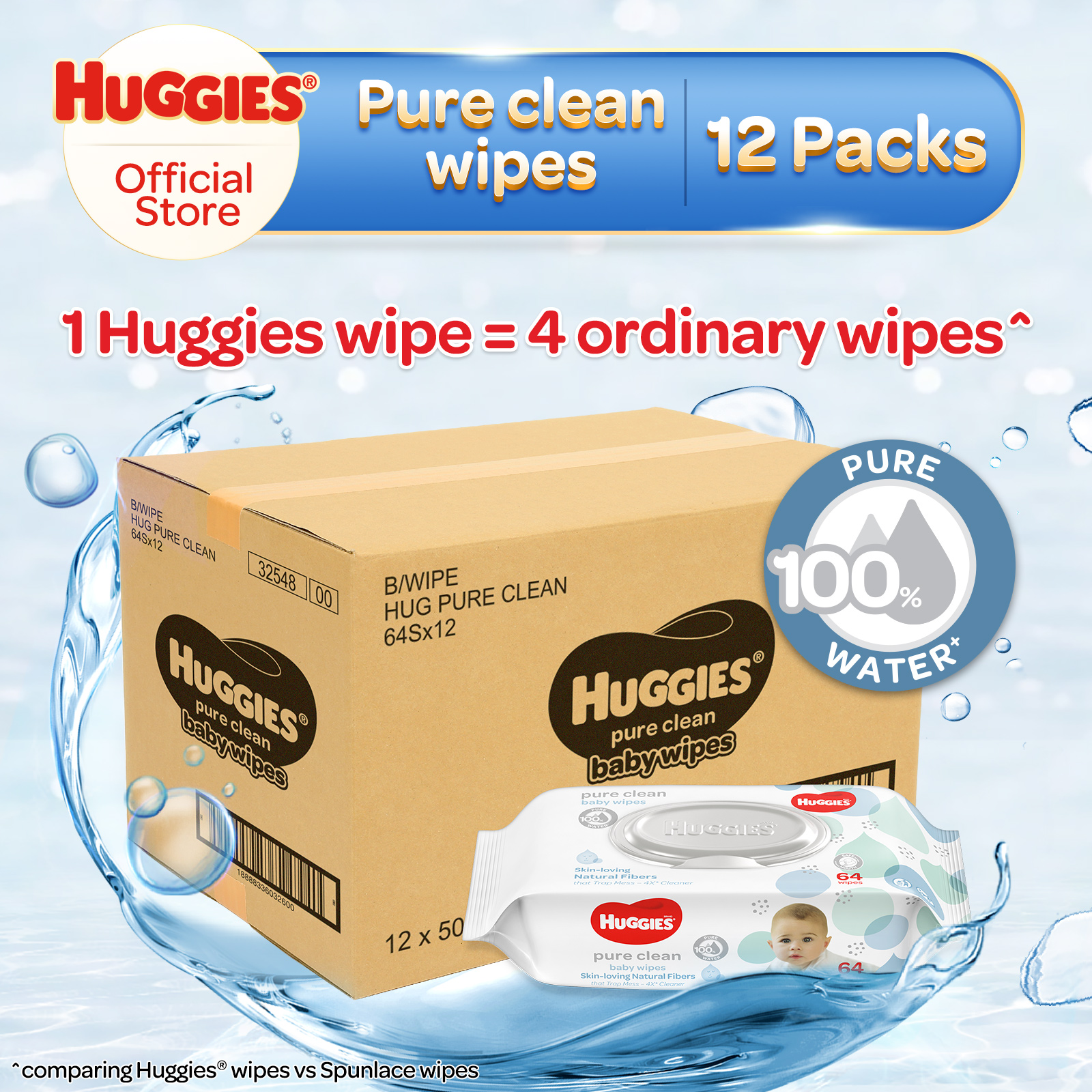 [Made in Singapore] Huggies Pure Clean Baby Wipes 64s X 12 (Carton)