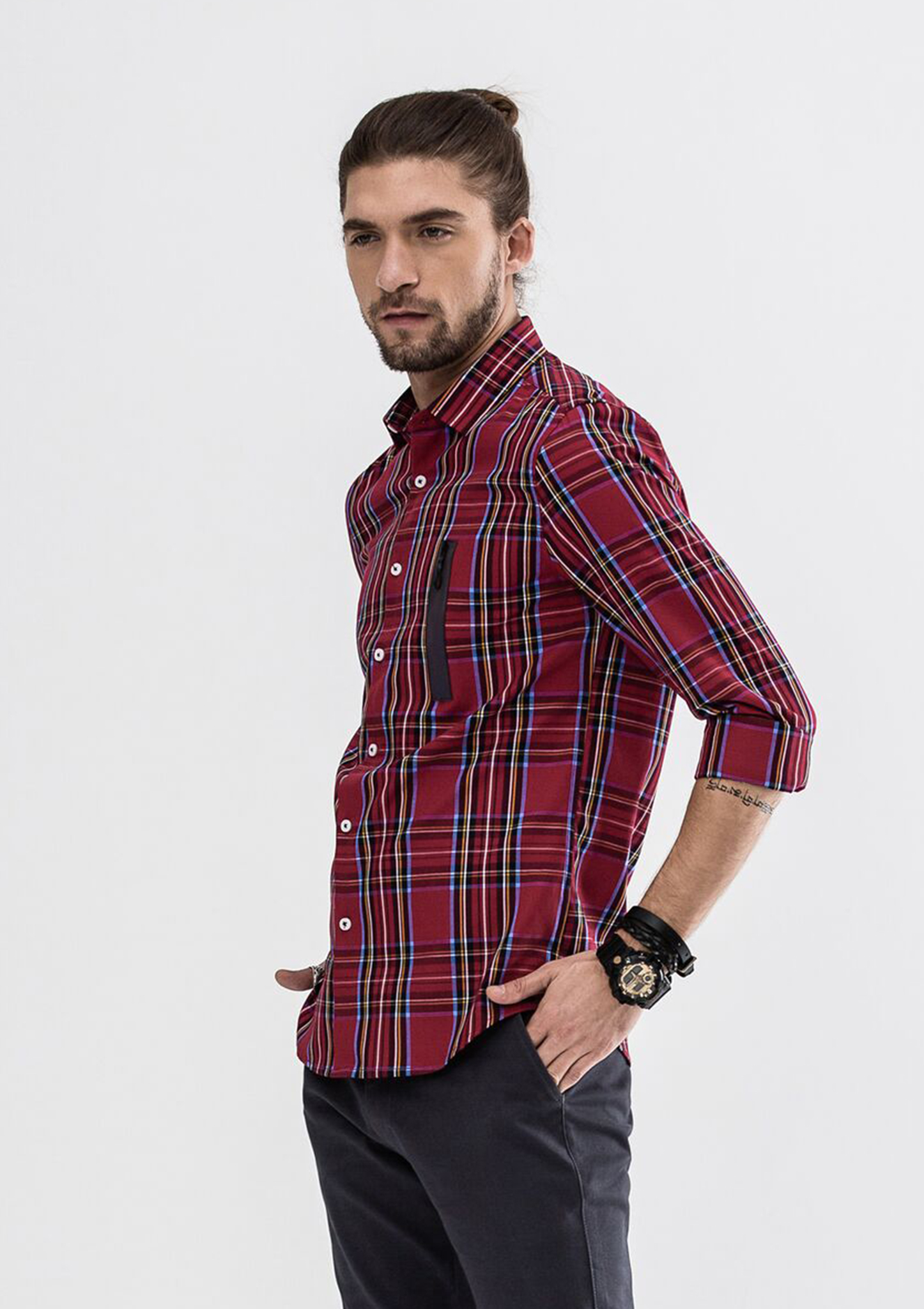 Explorer Authentic Side Zipper Checked Long Sleeve Shirt