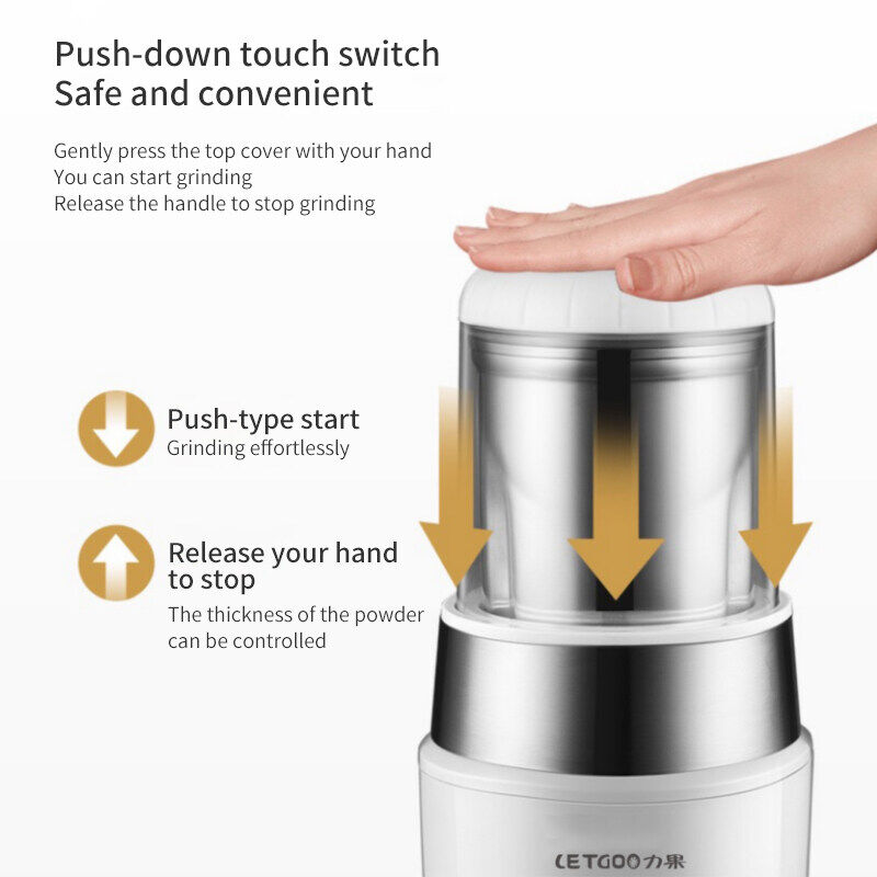 LETGOO Electric Coffee Bean Grinder 2-Leaf Blade Ultra-fine Bean Grinder Household Small Chinese Herbal Medicine Grinder