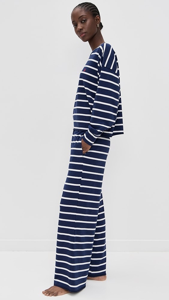 Crew Neck Wide Leg Pants Pajama Set