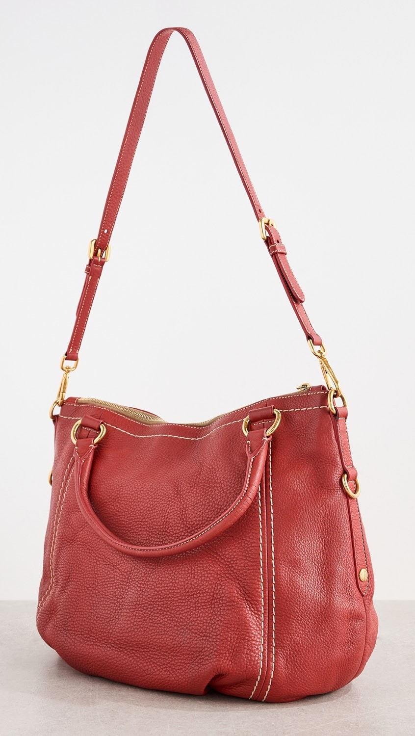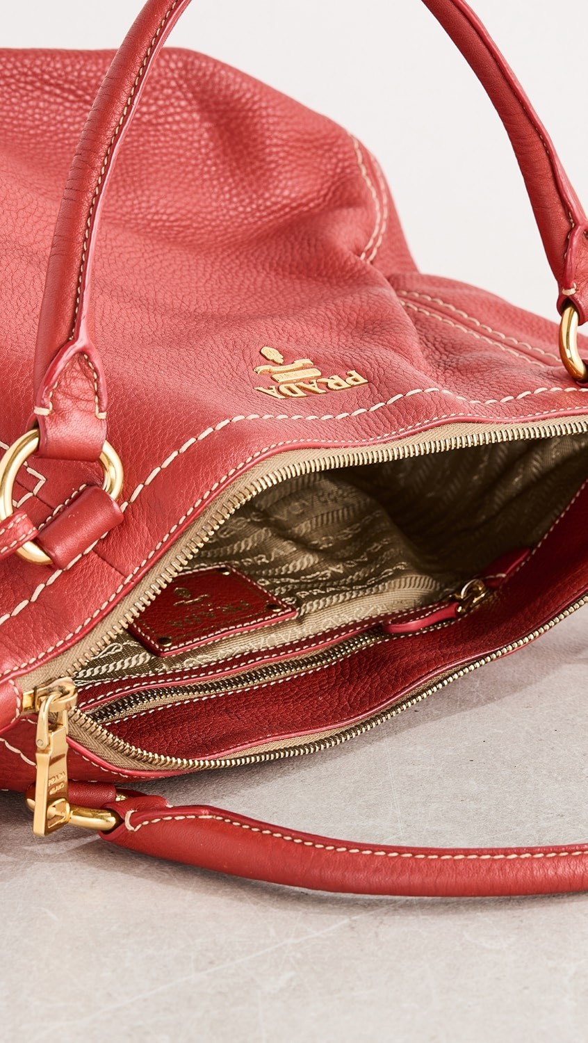 Prada Red Vitello Daino Sacca 2 Manici Tote