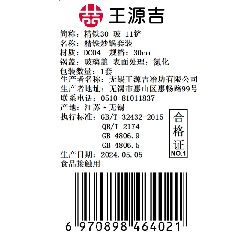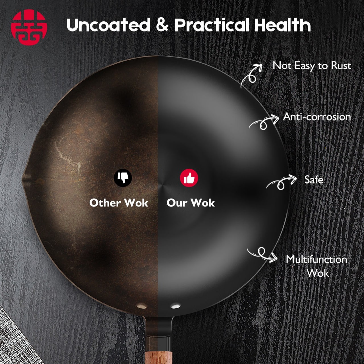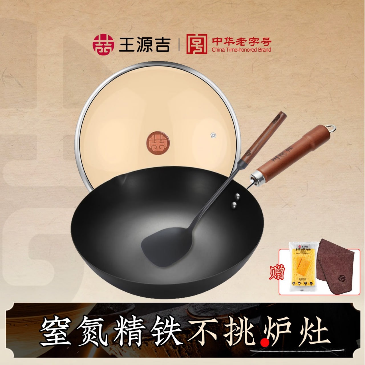 Wang Yuanji Chinese Stir-fry Pan and Spatula, Beech Wood Long Handle, Uncoated, Suitable for 2-4 People, Stovetop Friendly, 30cm (1 Piece)